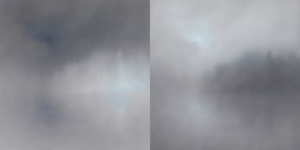 Framed Set Misty Lake Reflection Soft Neutral Pastel Foggy Landscape Illustrations Contemporary Minimal Living Room Bedroom Office WHITE