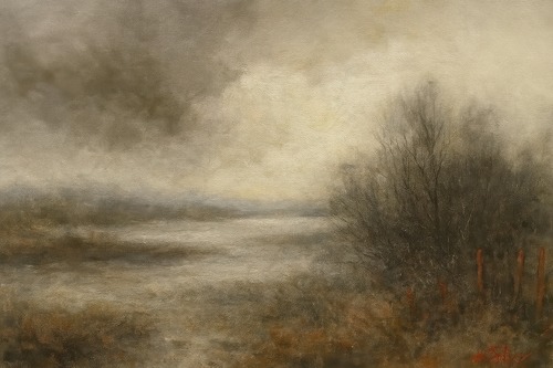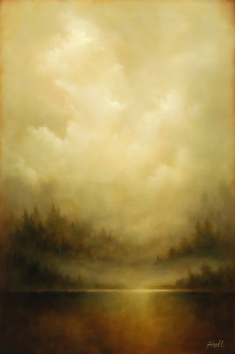 Foggy Riverside Landscape Neutral Toned Fine Traditional Dramatic Multicolor Ultra Living Room Bedroom Office