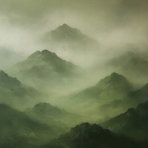 Large Framed Foggy Mountain Landscape in Green Shades Illustration Home Living Room Bedroom Decor (Frame Assembly Required)
