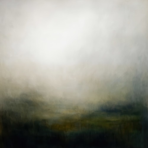 Large Framed Foggy Horizon Landscape Minimalist Neutral Grey and Green (Frame Assembly Required)