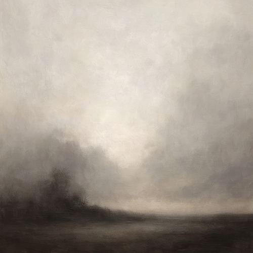 Framed Foggy Morning Field Abstract Landscape Soft Neutral Beige Illustrations Rustic Zen Colorful Living Room Bedroom Office BLACK