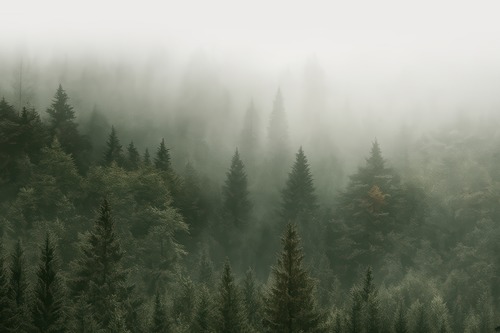 Premium Frame Misty est Pine Trees in Fog Landscape Illustrations Fine Traditional Iconic RelaxCalm Living Room Bedroom Office