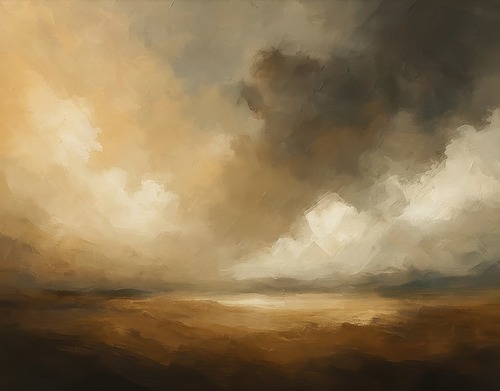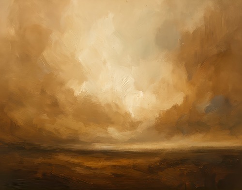 Framed Golden Storm Cloud Abstract Painting Dramatic Sky Illustrations Rustic Zen Colorful Living Room Bedroom Office NATURAL