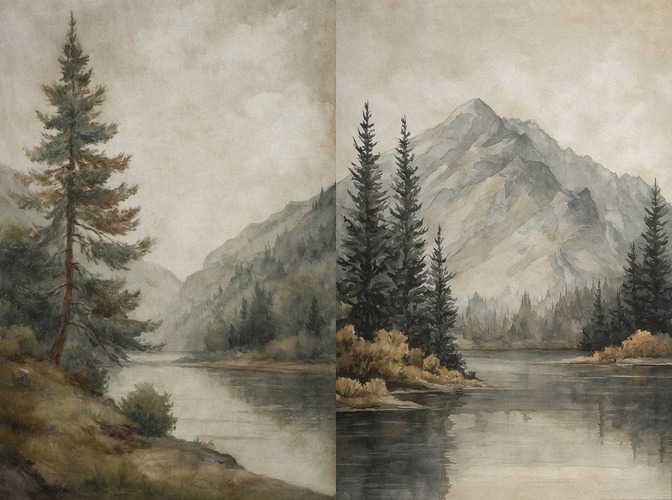MUDECOR Premium Framed Vintage Landscape Watercolor Old Master Tree Mountain Illustrations Fine Decorative Retro Historic Living Room Bedroom Office NATURAL