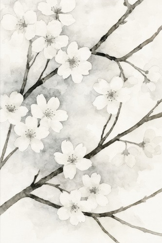 Framed Bird and Cherry Blossoms Traditional East Asian Illustrations Minimal RelaxCalm Living Room Bedroom Office BLACK