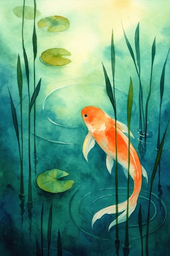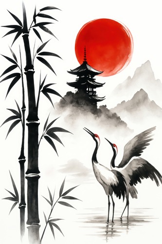 MUDECOR Framed Vibrant Yellow Poppies Basking in Lush Greenery Illustration RelaxCalm Warm work Black Frame