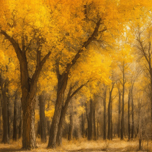 Oil Painting Colorful Autumn Trees Semi Abstract Image of est Aspen Trees with Yellow Stretched and Framed