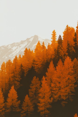 Golden Pines Mountain View Autumn Trees Photography Realism Decorative Elements RelaxCalm Grey Cool Black and White Living Room Bedroom Office