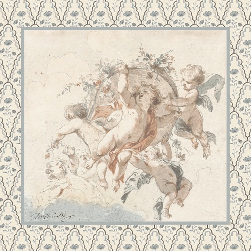 Framed Baroque Cherubs and Angels Sketch with Floral Garland Illustrations RelaxCalm Warm Living Room Bedroom Office Black