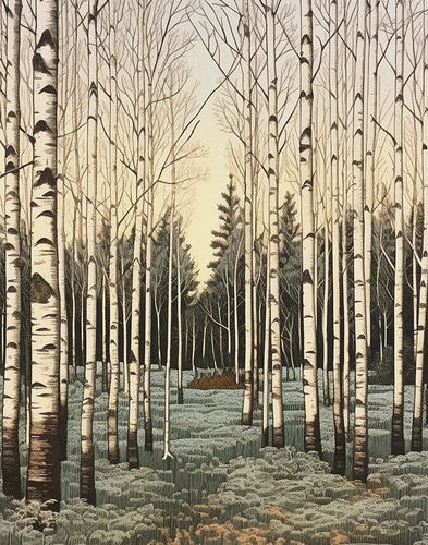 Poster Set of Rustic Birch Tree est Wood Nature Wilderness Digital Decorative Living Room Bedroom Office