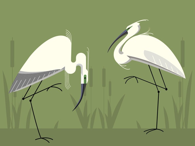 Framed Serene White Egret Bird Elegant Minimalist Wildlife Illustrations Minimal Boho RelaxCalm Living Room Bedroom Office Natural