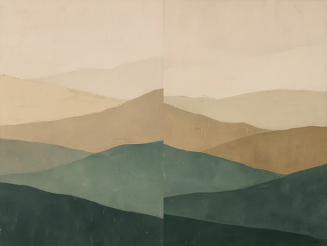 Framed Set Neutral Landscape Mountain and Lake Illustrations Bohemian Nordic RelaxCalm Living Room Bedroom Office Natural