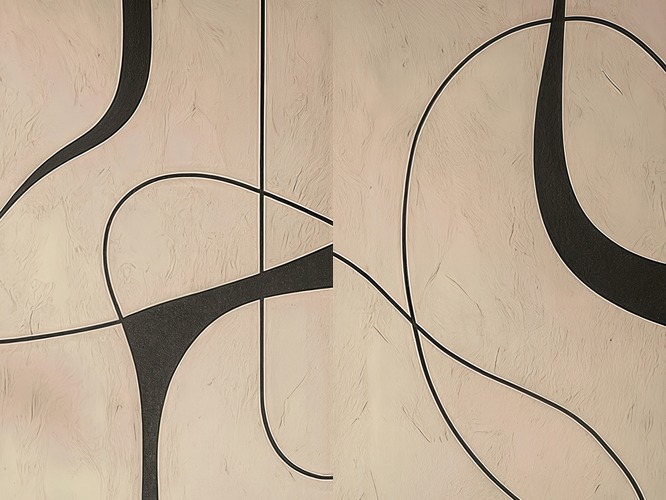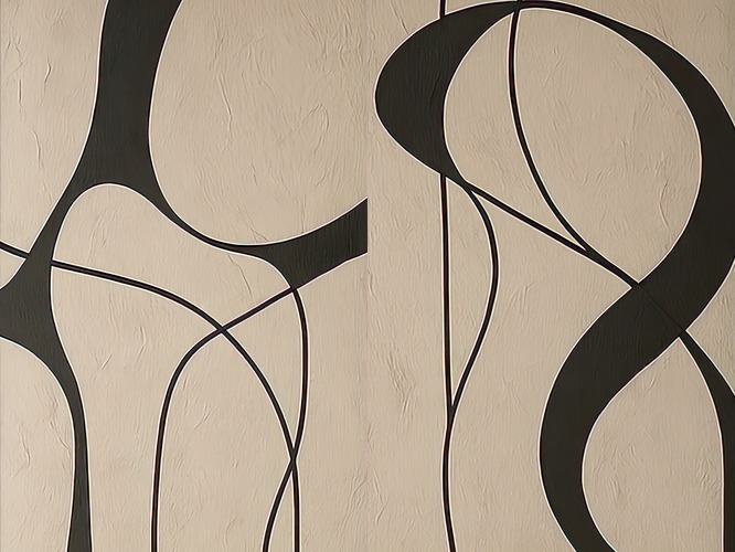 Framed Set Beige and Black Abstract Curve Minimalist Geometric Minimal Boho RelaxCalm Living Room Bedroom Office Black