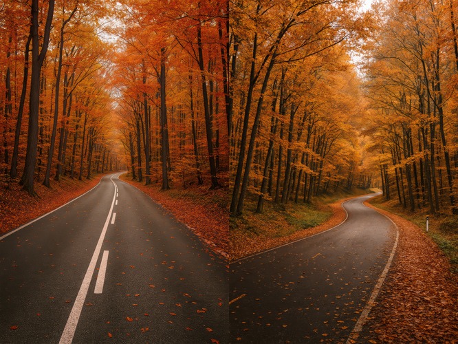 Framed Set Autumn est Road Nature Landscape Illustrations Minimal Boho RelaxCalm Living Room Bedroom Office White