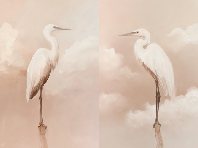 Framed Set Heron Bird Minimalist Egret Illustrations Minimal Boho Colorful Living Room Bedroom Office NATURAL
