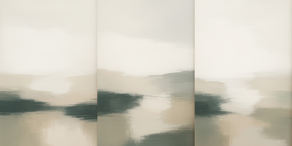 Framed Set Golden Horizon Mist Neutral Beige and Olive Gradient Abstract Landscape Zen Bohemian Living Room Bedroom Office NATURAL