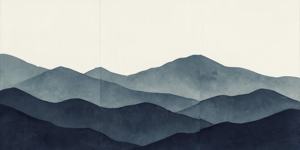 Framed Set Blue Abstract Mountain Minimalist Layered Landscape Illustrations Decorative Boho RelaxZen Living Room Bedroom Office WHITE