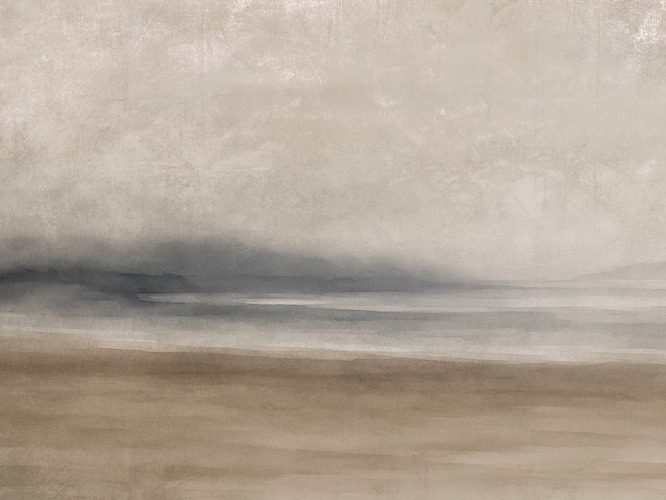 Framed Foggy Coastal Landscape Neutral Brown and Gray Misty Illustrations Minimal Boho RelaxCalm Living Room Bedroom Office White