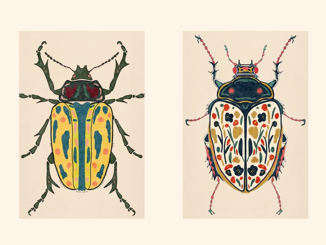 Framed Set Colorful Beetle Vintage Insect Illustrations Minimal Boho Colorful Living Room Bedroom Office NATURAL