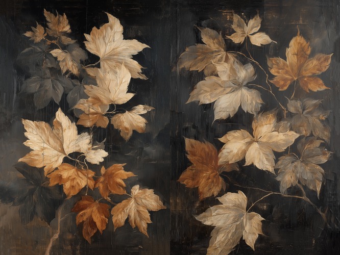 Framed Set Golden Brown Botanical Leaves Vintage Nature Illustrations Minimal Boho RelaxCalm Living Room Bedroom Office Black