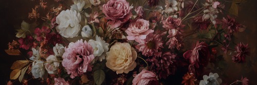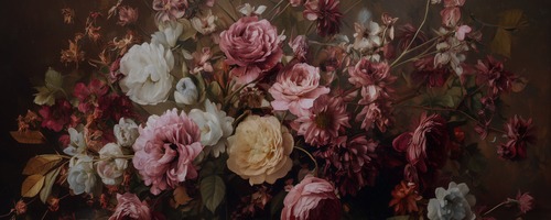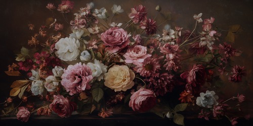 Framed Vintage Floral Bouquet Romantic Dark Botanical Illustrations Decorative Multicolor Zen Rustic Calm Living Room Bedroom Office NATURAL