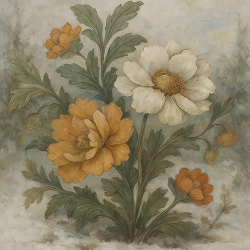 Framed Vintage Floral Bouquet Painting Rustic Botanical Illustrations RelaxCalm Warm Living Room Bedroom Office White