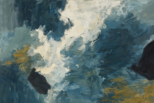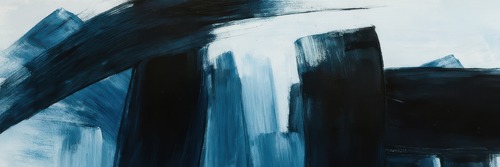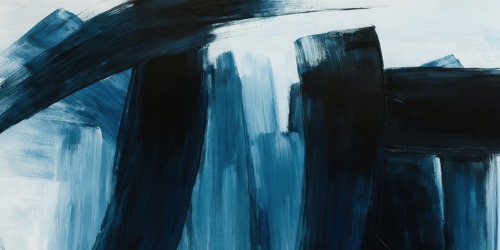 XL Framed Blue and White Expressive Brushstroke Abstract (Frame Assembly Required)