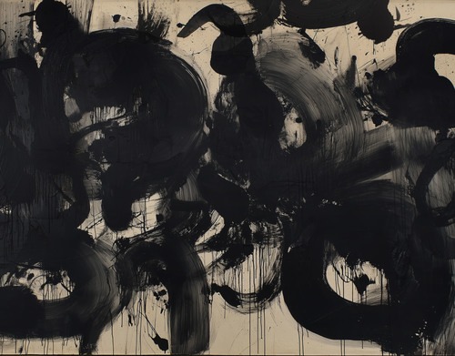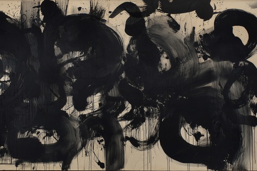 Extra Large Framed Bold Black Abstract Expressionism Contemporary Brushstroke Home Living Room Bedroom Decor (Frame Assembly Required)