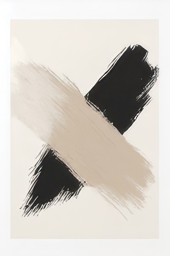 Framed Cross Brushstroke Abstract Black and Beige Minimalist Illustrations Minimal Calm Multicolor Living Room Bedroom Office BLACK