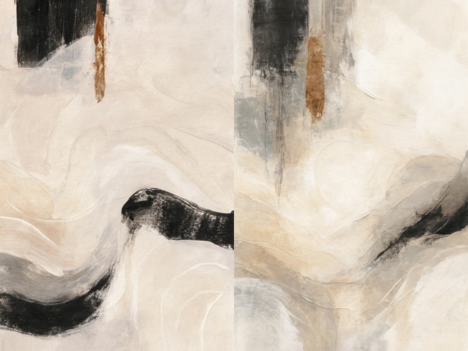 Ashbrook Framed Set Neutral Abstract Brushstroke Beige and Black Illustrations Decorative Living Room Bedroom Office BLACK