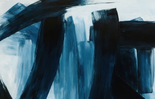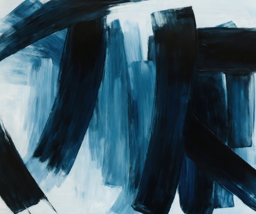 Extra Large Framed Dark Blue Abstract Brushstroke Home Living Room Bedroom Decor (Frame Assembly Required)