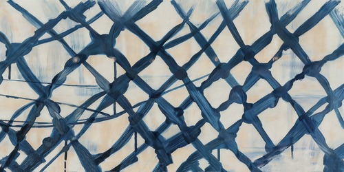 XL Framed Navy Blue Geometric Brushstroke Pattern (Frame Assembly Required)