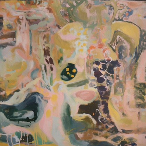 Large Framed Colorful Abstract Expressionist istic Composition with Fluid Brushstrokes (Frame Assembly Required)