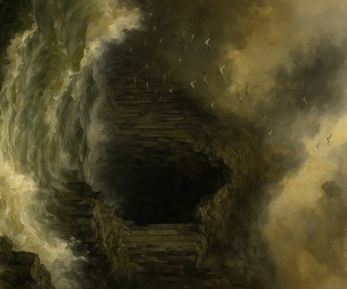 Fantasy Series Beauty Walking Towards The Light in a Cave