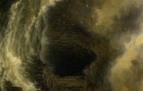 SIGNLEADER XL Framed Dark Seascape Stormy Ocean Cave with Birds (Frame Assembly Required)