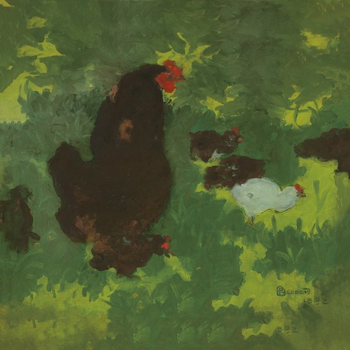 artprintsstop A Cottage Garden with Chickens by Danish Painter Peder Mørk Mønsted