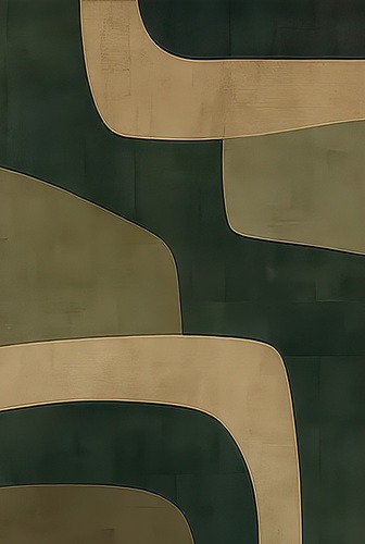 Premium Frame Minimalist Abstract Olive Green and Beige Curved Shapes Illustrations Fine Traditional Iconic RelaxCalm Living Room Bedroom Office Natural