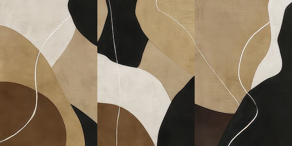 Set Abstract Earthy Shapes Beige Brown Black and White Curved Line Illustrations Bohemian Colorful Living Room Bedroom Office