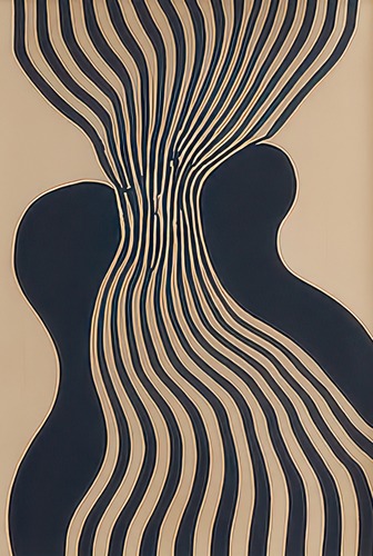 Premium Frame Abstract Curved Lines Beige and Black Geometric Flow Illustrations Fine Traditional Iconic Living Room Bedroom Office Black
