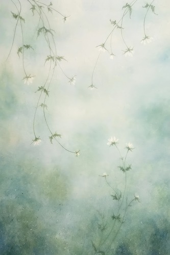Framed Delicate White Wildflowers on Misty Blue Illustrations Digital Decorative Multicolor Rustic Minimal Bedroom Natural