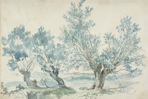 MUDECOR Framed Two Willow Trees Delicate Watercolor Landscape with Soft BlueGreen Tones Illustrations RelaxCalm Living Room Bedroom Office WHITE