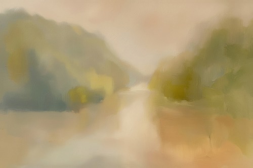 Framed Soft Pastel Landscape Dreamy River and Mountain Scene RelaxCalm Multicolor Living Room Bedroom Office NATURAL