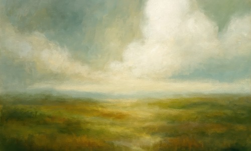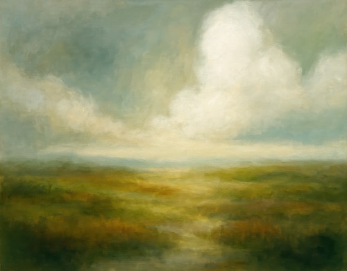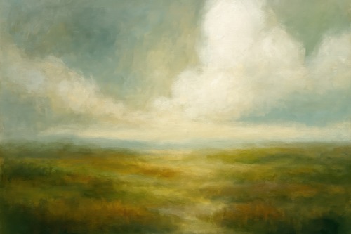 Extra Large Framed Green Mist Abstract Landscape Dreamy Clouded Sky Illustration Home Living Room Bedroom Decor (Frame Assembly Required)