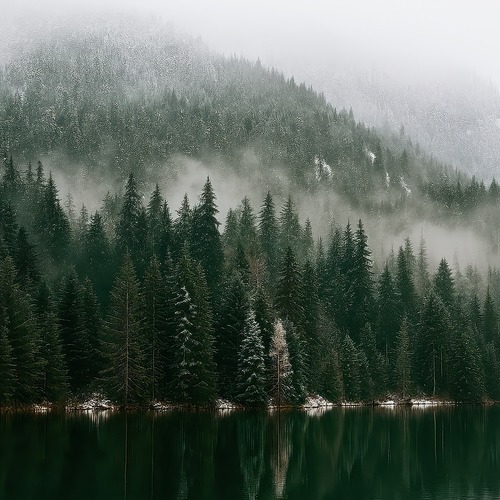 Panel Misty ests of Evergreen Coniferous Trees in an Ethereal Landscape ations