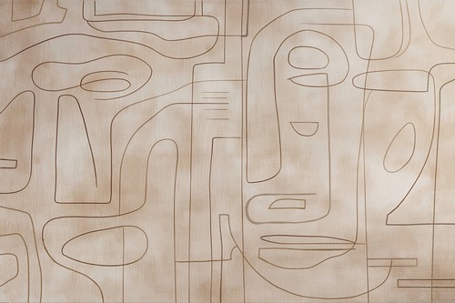 MUDECOR Mural Neutral Beige Abstract Faces and Vases Minimalist Removable SelfAdhesive paper ation Bedroom Living Room