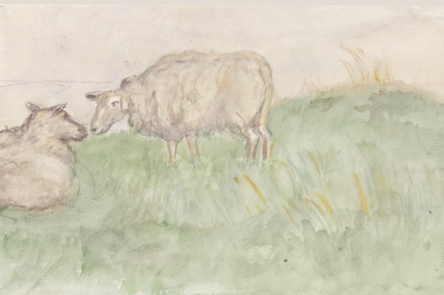 Framed Set Pastel Watercolor Sheep in Meadow Gentle Farm Animal Scene Illustrations Country Landscape Living Room Bedroom Office Natural
