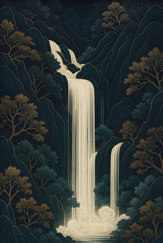 Premium Framed Elegant Waterfall in Lush est Nature Landscape Illustrations Fine FarmhouseCountry Decorative Rustic Vintage Antique Classic Bedroom Natural