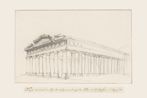 Framed Set Classical Temple Pencil Sketch Detailed Architectural Illustrations FarmhouseCountry Landscape Living Room Bedroom Office Natural