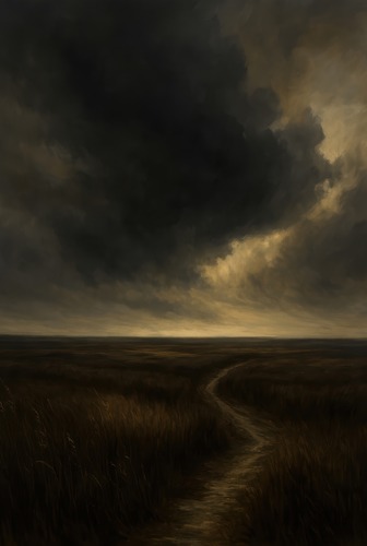 Premium Framed Stormy Sky Over Open Field Path Dark Landscape Illustrations Fine FarmhouseCountry Decorative Rustic Vintage Antique Classic Bedroom Black