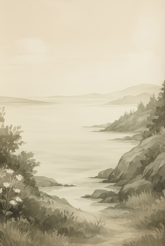 Premium Framed Coastal Cliffside and Ocean Horizon Sepia Landscape Illustrations Fine FarmhouseCountry Decorative Rustic Vintage Antique Classic Bedroom Natural